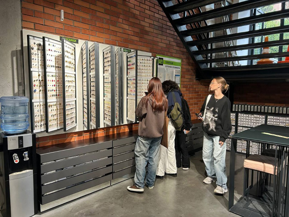A separate part of the meeting was devoted to an introduction to the materials and fabrics used in garment production. Particular interest was sparked by the opportunity to observe the production process, including the work of seamstresses and craftsmen who create components and accessories, such as designer buttons.