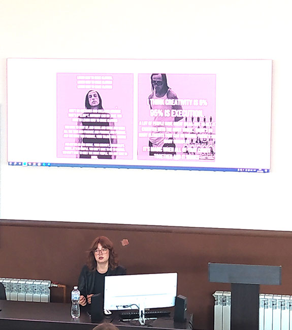During the lecture, Anna, who has many years of experience in promoting her own brand on the Ukrainian fashion market, shared her professional journey – from the training stage to presenting her own designs to a wide audience. Drawing on numerous examples of well-established brands, she gave students the opportunity to explore the specifics of building and presenting a personal brand across various areas of design.