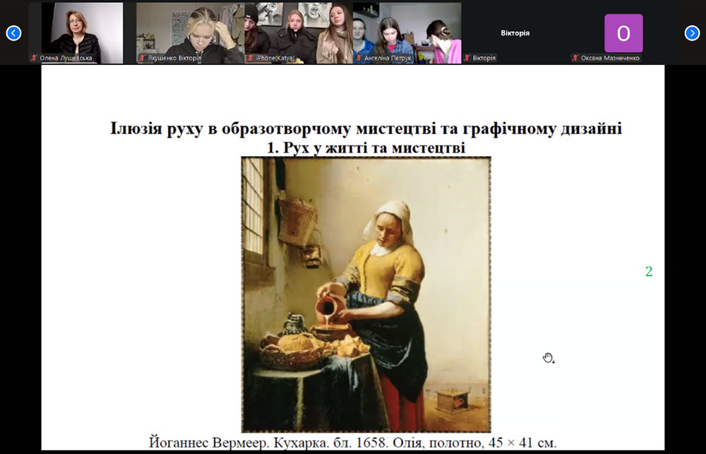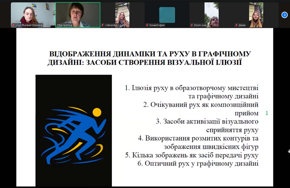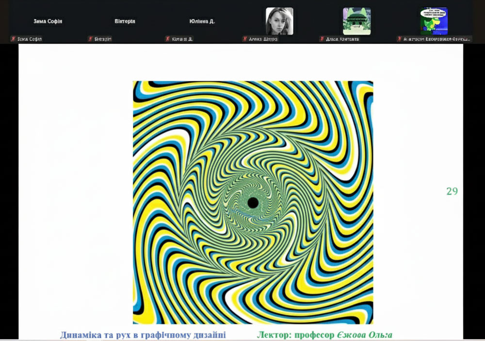 On October 1, 2025, within the framework of the Week of Design at KNUTD, a lecture by Olga Yezhova, Doctor of Pedagogical Sciences, Professor of the Department of Graphic Design at KNUTD, was held on the topic "Reflection of Dynamics and Movement in Graphic Design: Means of Creating Visual Illusion".