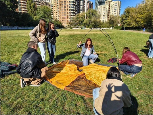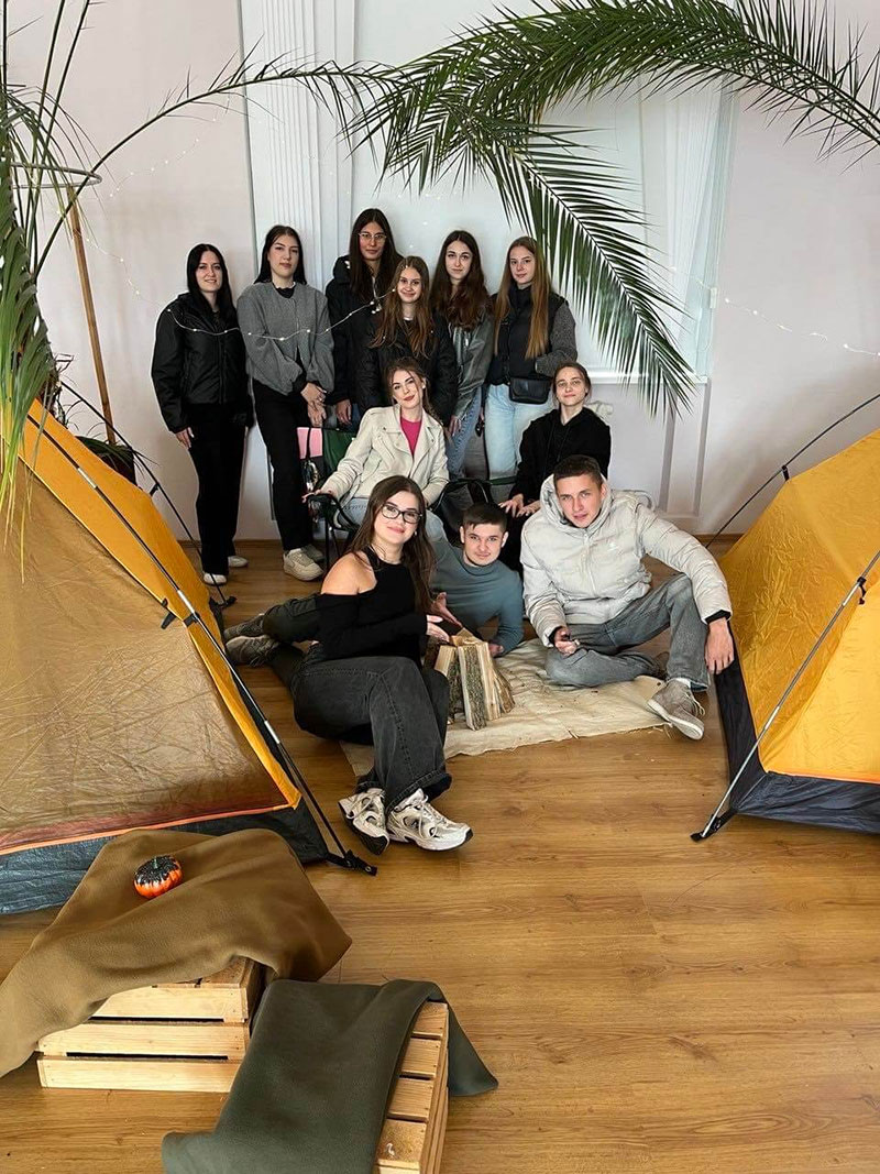 The practical aspect of the celebration was represented by an active tourism workshop led by Leonila Tkachuk, Associate Professor of the Department of Tourism and Hotel and Restaurant Business. Participants had the opportunity to practice setting up tents, organizing camp life during hiking trips, and developing teamwork and leadership skills. The event not only strengthened students’ practical competencies but also fostered a spirit of adventure and cooperation essential for future professionals in the tourism industry.