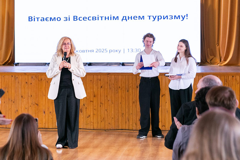 The celebration began with a welcome address by Oleksandra Olshanska, Acting Rector of KNUTD, who emphasized the importance of tourism as a field that drives economic development, promotes cultural exchange, and helps shape an open-minded worldview among young people.