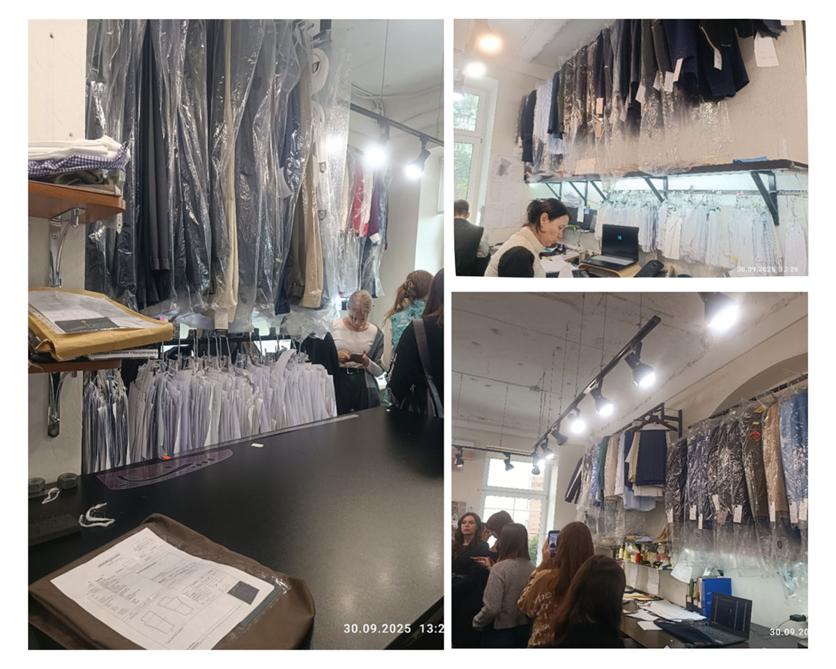On September 30, 2025, students of the first (bachelor’s) level of the educational and professional program “Fashion Design”, accompanied by curators Maryna Yatsenko and Nadiia Liuklian, visited the Fashion House “INDPOSHIV”, which specializes in bespoke classic men’s clothing. The tour was organized by Viacheslav Moskal, a postgraduate student of the educational and scientific program “Design”, as part of his teaching internship.