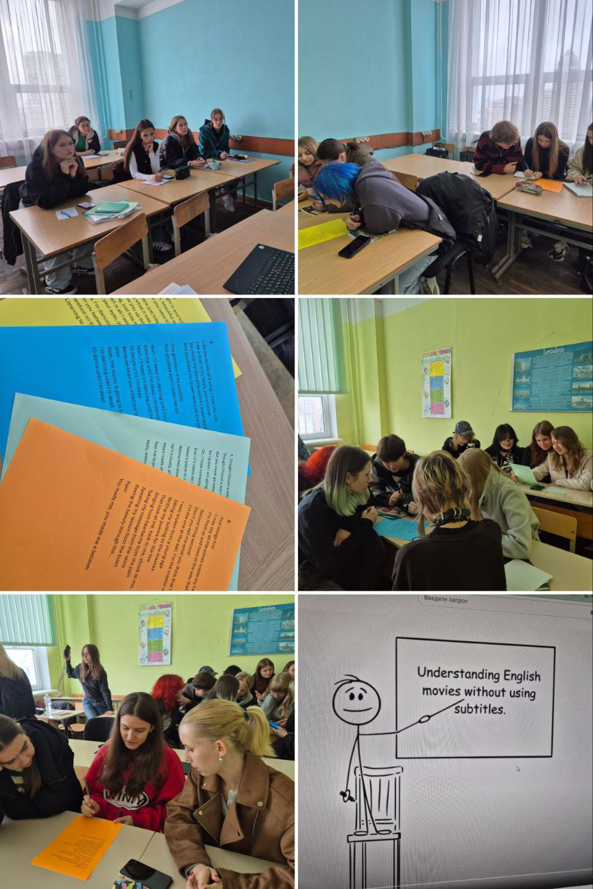 On 29 September 2025, Senior Lecturer Viktoria Petrenko held a class for students of groups BDS1-25, BSH1-25 and BSHMK1-25 on the topic ‘Translation in songs and film dialogues: interpretation of cultural worldviews.’ The students discussed the translation of songs and dialogues, watched and analysed video material on understanding films in a foreign language without subtitles.