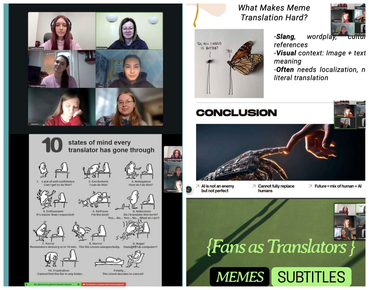 On 2 October 2025, Kseniia Kugai, Associate Professor of the Department of Philology and Translation, held a thematic class entitled ‘Translation in Trend: Memes, Subtitles and Artificial Intelligence’ with students of the BAM-22 group.