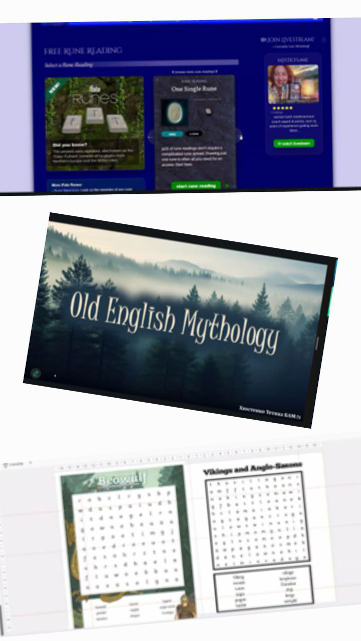 On 2 October 2025, Doctor of Pedagogical Sciences, Professor of the Department of Philology and Translation Svitlana Fedorenko and PhD, Associate Professor of the Department of Philology and Translation Oksana Khalabuzar, together with students of the BAM-24 group, organised and conducted an interactive workshop entitled ‘From Runes to Chronicles: Old English Written Sources’ for higher education seekers from the BAM-25 group. First- and second-year philologists learned about the periodisation of the history of the English language, tried to write their own names in ancient runes, analysed authentic video content, and read an excerpt in Old English from the first major monument of English literature – the epic poem Beowulf, which was written over a thousand years ago but still impresses today with the power of its words, the grandeur of its images, and the stylistic and poetic devices that give the poem its special sound.