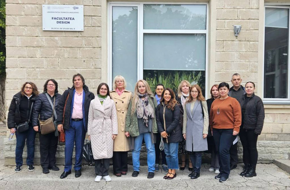 As part of the meeting, a visit was made to the Faculty of Design of the Technical University of Moldova (TUM), where they were introduced to the areas of scientific research, educational programs, modern technologies and methods of training designers and fashion industry specialists. For many years, the Faculty of Design of the University of Moldova has been training specialists for light industry (sewing, textile, footwear, knitwear, etc.). The faculty team, led by Dean Marcela Irovan, continues to maintain traditions and a high level of training specialists, opening up new specialties, for example, game design. We would like to thank our colleagues Angela Skripchenko, Marcela Irovan, and Valentina Bulgaru for the many years of cooperation between KNUTD and TUM, which has lasted for more than 20 years.