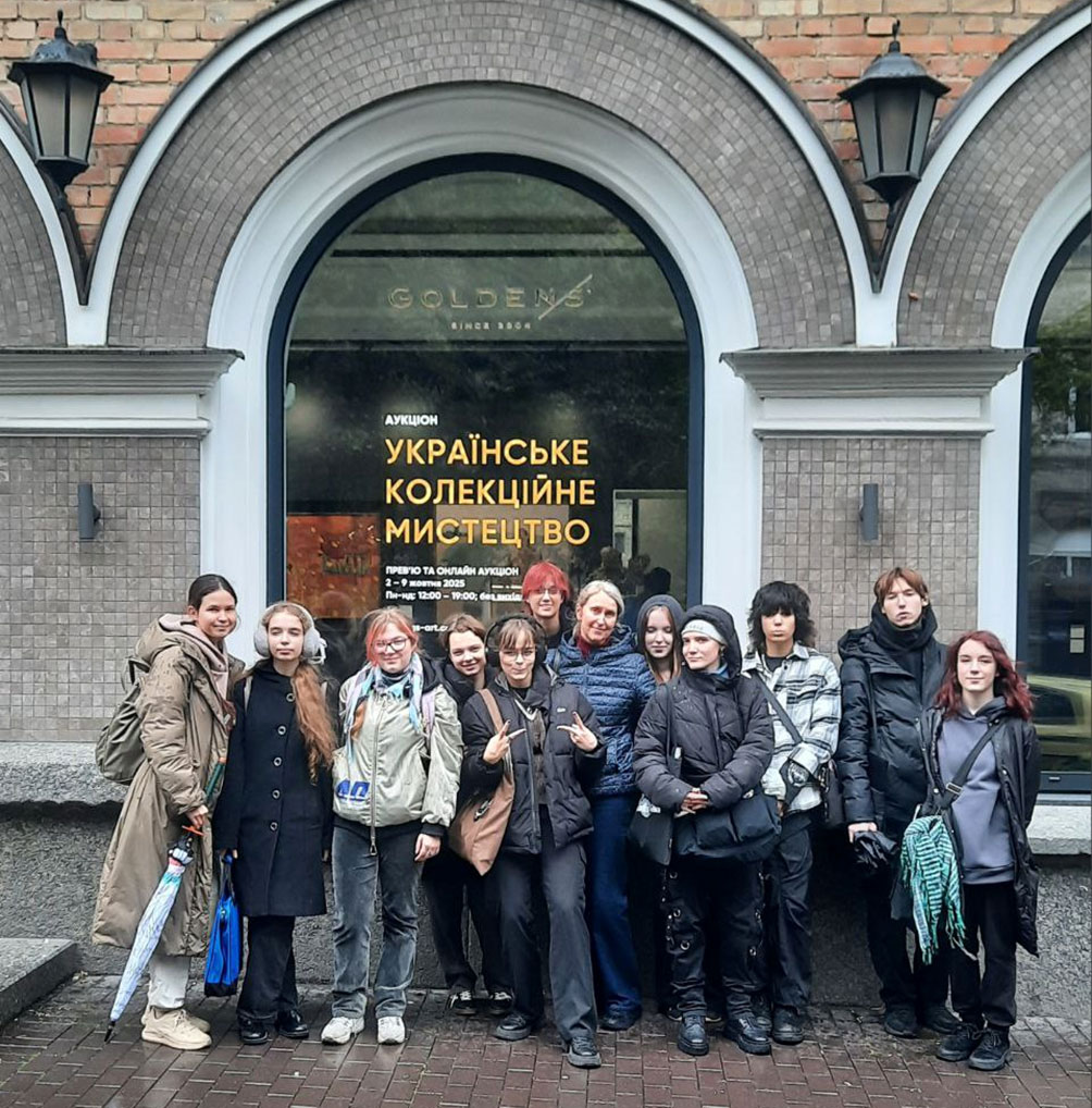 On 9 October 2025, students of Group БЦМ1-25, Digital Art programme of the Faculty of Culture and Creative Industries of KNUTD, together with their curator Svitlana Pashukova, visited the exhibition “Ukrainian Collectible Art of the 19th-21st Centuries”, held at the GOLDENS Auction House.