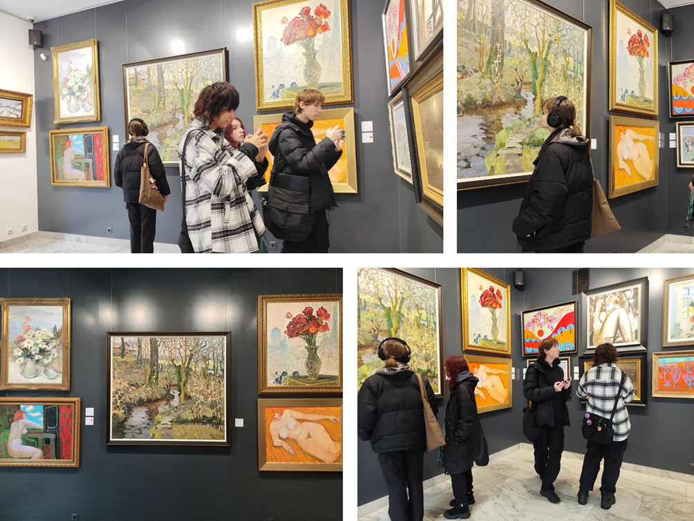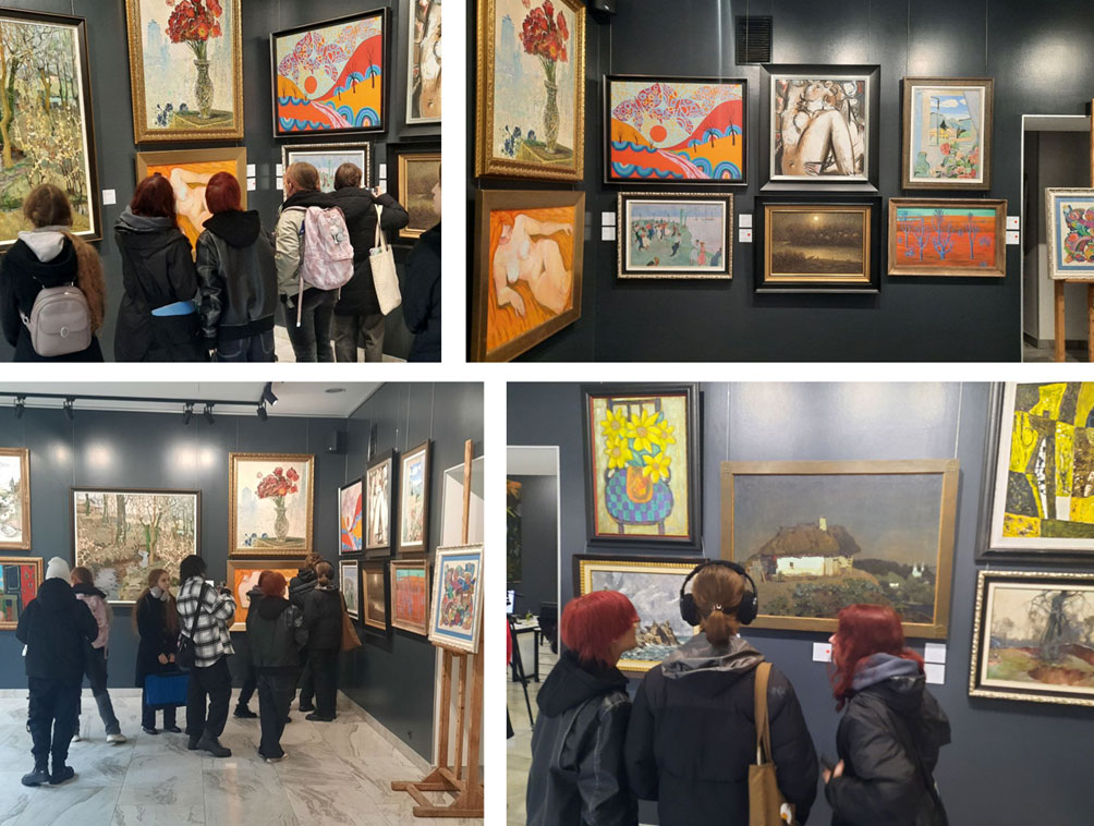 During the visit, the students had the opportunity not only to immerse themselves in the artistic atmosphere of the exhibition but also to gain insight into how art functions within the art market system. The visit served as an important component of professional training within the course “Academic Fine Arts”, as it fostered a deeper understanding of artworks, analytical thinking, and awareness of the artist’s role in the contemporary cultural context. The students discovered that the academic school and the modern art market are not opposing phenomena but interact within a shared field of values, shaping new directions for the development of Ukrainian art. The exhibition became not only an educational experience but also a source of creative inspiration and personal reflection on artistic heritage as a living platform for new ideas and artistic experimentation.