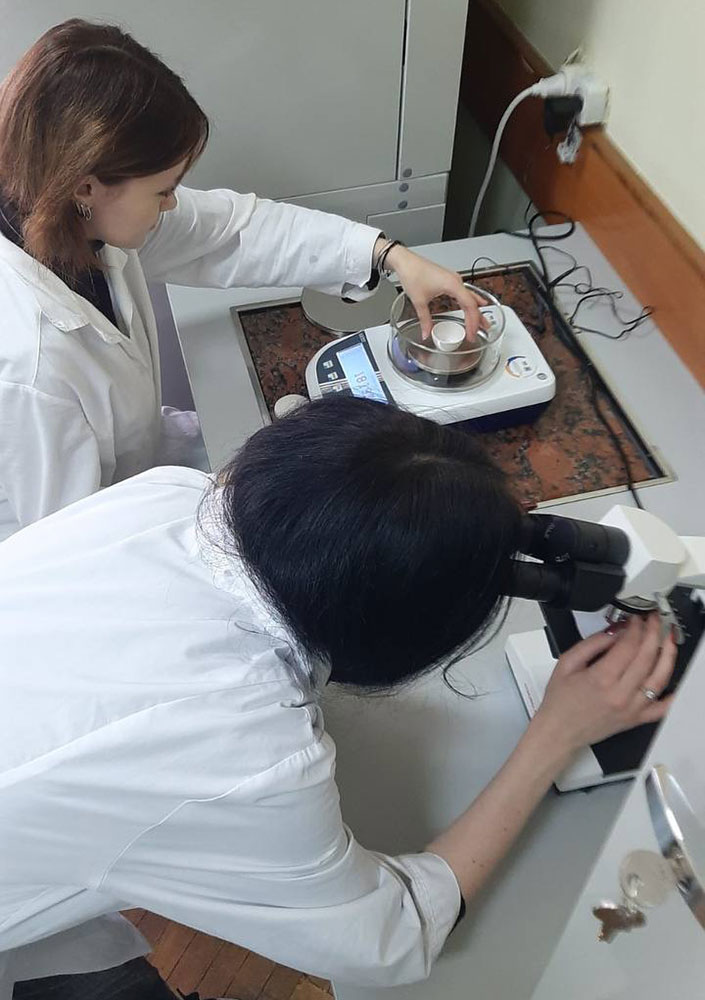 The research partnership between the Department of Applied Physics and Higher Mathematics and the Department of Fashion Technology continues. Students from Group BNT-22, Viktoria Bobuta and Evelina Verchenko, conducted their research in the textile materials finishing laboratory under the supervision of postgraduate student Anna Vardanian.