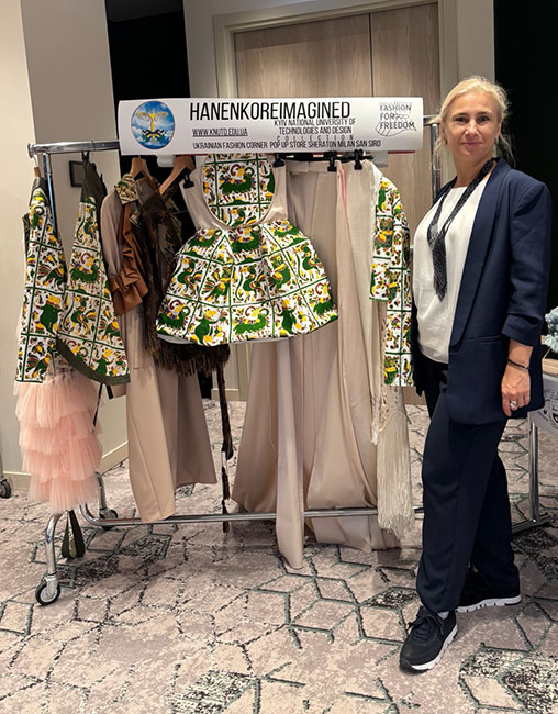 On September 27, 2025, as part of Milan Fashion Week, the Sheraton Milan San Siro hosted a large-scale international cultural project on inclusive and sustainable fashion, Fashion For Freedom MFW25. With the support and on behalf of Acting Rector Oleksandra Olshanska, Kyiv National University of Technologies and Design participated in the event, represented by members of the Faculty of Arts and Fashion Tetiana Struminska (Head of the Department of Fashion and Style) and Alla Rubanka (Associate Professor, practice-oriented lecturer). The project was organized by VitaWorld, VITAUKR and Fashion Globus Ukraine.