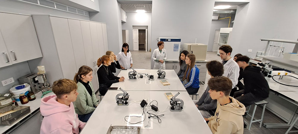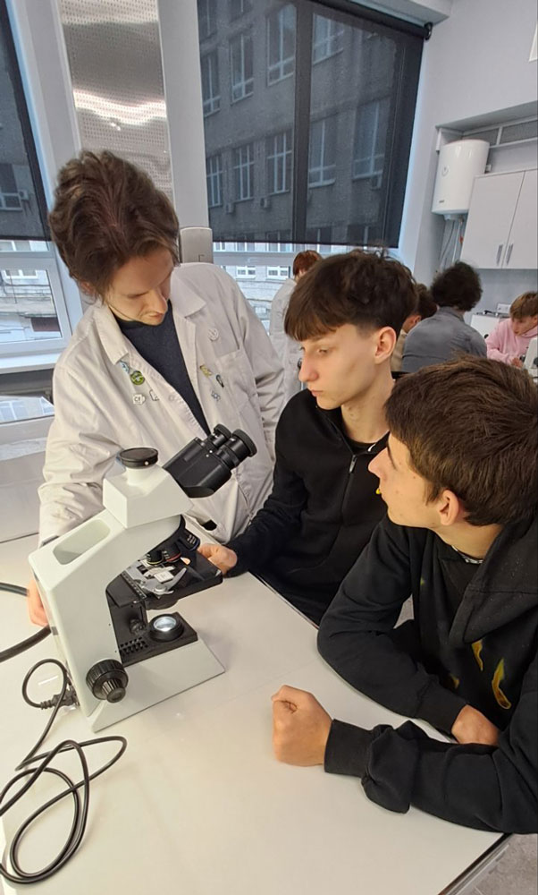 Colleagues from the Department of Biotechnology, Leather and Fur also joined the event. Under the guidance of Associate Professor Olena OKHMAT and Assistant Oleksandr KALINICHENKO, the students became familiar with the structure of monocular and binocular microscopes and carried out a laboratory exercise on “Microscopic Methods for Studying Plant and Animal Cells”.