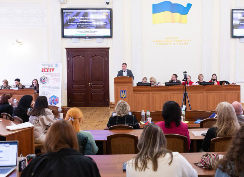 Taras Prytula also welcomed the participants and guests of the event to the start of the conference. In his report “Trust as a Competitive Advantage: How Leaders Transform Disparate Businesses into a Unified Ecosystem”, the speaker presented an analytical overview of the development of Ukraine’s light industry and the role of corporate ethics in shaping sustainable business models. Taras Prytula emphasized that the company is systematically working on implementing social responsibility strategies that take into account the economic barriers of the industry and are aimed at strengthening cooperation between business, education, and the public. The speaker discussed research conducted in Ukraine and abroad that helped identify key factors hindering the growth of the industry, as well as possible ways to overcome them. Taras Prytula paid special attention to the need to develop partnership initiatives between educational institutions and enterprises that form the modern human resource base of the industry. He also emphasized that Ukraine still lacks specialized financial programs and investments focused on the needs of the sector, but the potential for cooperation with educational and cultural platforms remains high. The speech became a vivid example of a strategic approach to the development of the industry through the prism of corporate social responsibility and inter-sectoral cooperation.