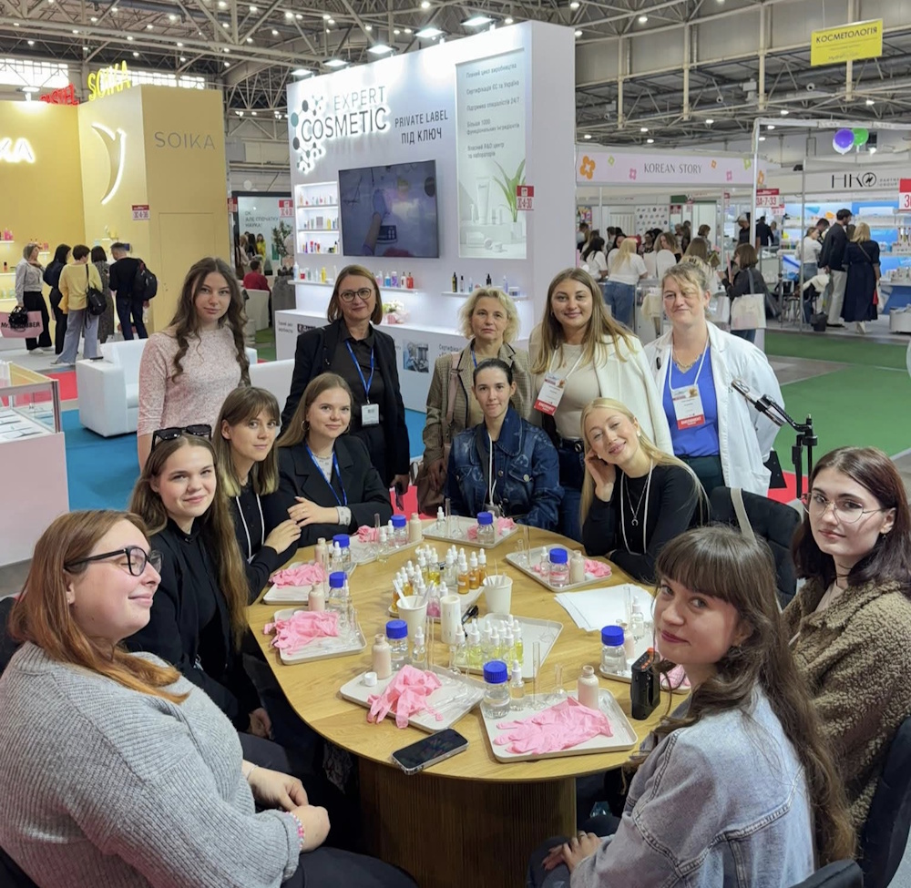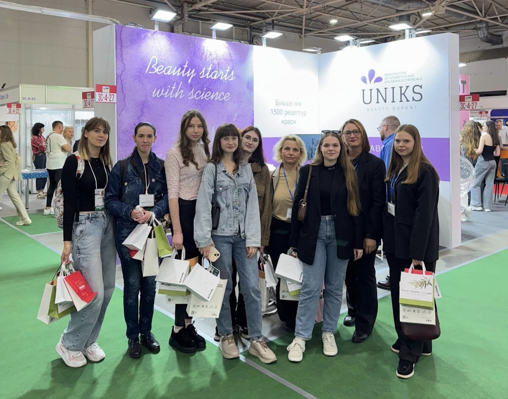 From September 17 to 19, 2025, first- and second-year students of the educational-professional program European, under the guidance of scientific and pedagogical staff of the Department of Industrial Pharmacy –Olena Ishchenko, Doctor of Technical Sciences, Associate Professor, Olena Roik, PhD of Pharmaceutical Sciences, Associate Professor and Vadym Lisovyi, PhD – visited the 23rd International Beauty Industry Exhibition "InterCHARM-Ukraine 2025". During the event, students learned about current trends in the perfume and cosmetics industry and the latest developments from leading Ukrainian manufacturers. They took part in practical master classes on making shower gel and creating original fragrance compositions, organised by UNIKS specialists. For students, participation in the exhibition was a great opportunity not only to expand their knowledge but also to communicate with potential employers, which opens up prospects for further employment. At the same time, for the faculty members, this event was a valuable resource for establishing cooperation and expanding partnerships with companies in the cosmetics industry.