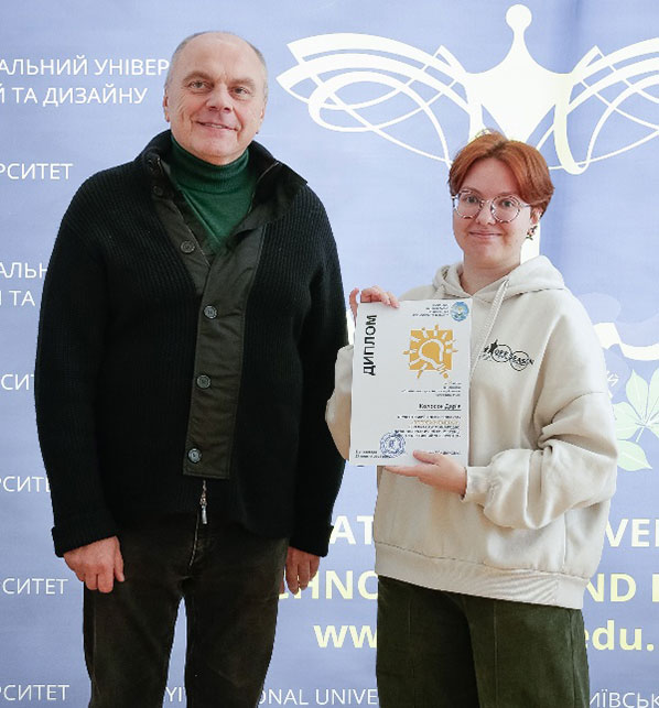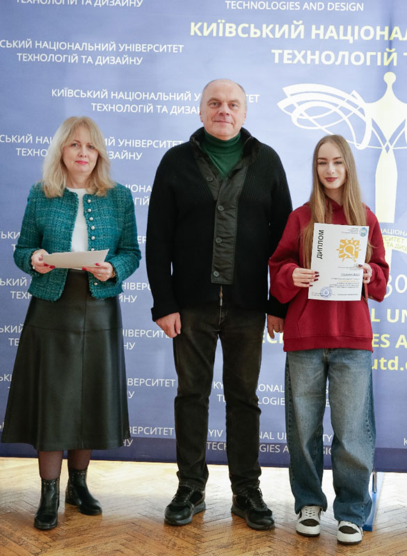 In a solemn atmosphere, all the winners of the Competition were awarded diplomas. On behalf of Oleksandra Olshanska, Acting Rector of KNUTD, Doctor of Science in Economics, Professor the diplomas were awarded to the winners of the Competition by the Mykhailo Kulyniak, First Vice-Rector of KNUTD, Igor Panasiuk, Dean of the Faculty of Engineering and Information Technologies and Kalyna Pashkevych, Dean of the Faculty of Design.
