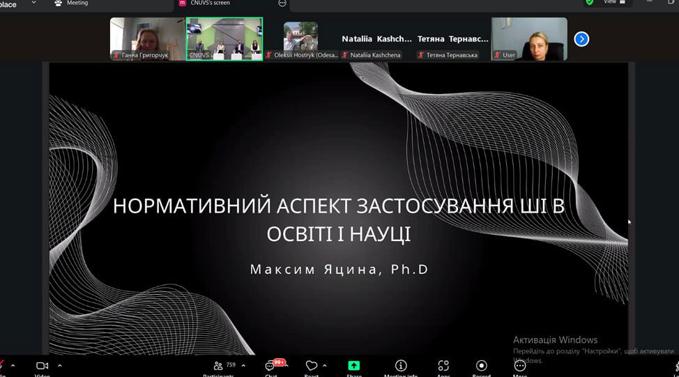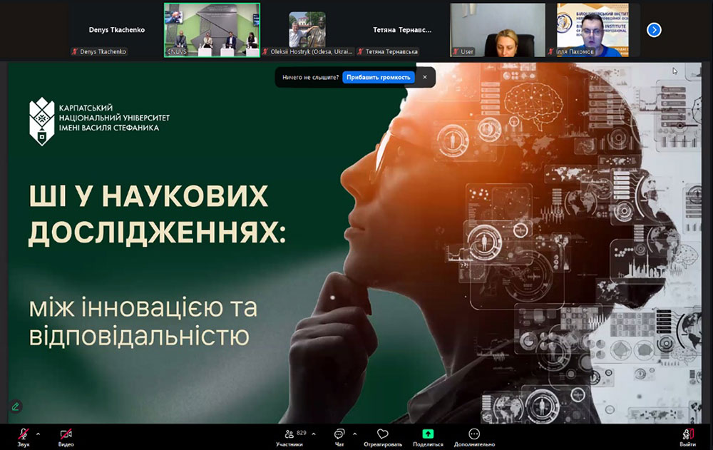 During the training, speakers Maksym Yatsyna, Tetyana Kornienko, Roman Dzumedzei, and Olga Gandera revealed ethical issues and regulatory requirements for the use of artificial intelligence in science, as well as modern mechanisms for interaction between scientists and artificial intelligence programs.