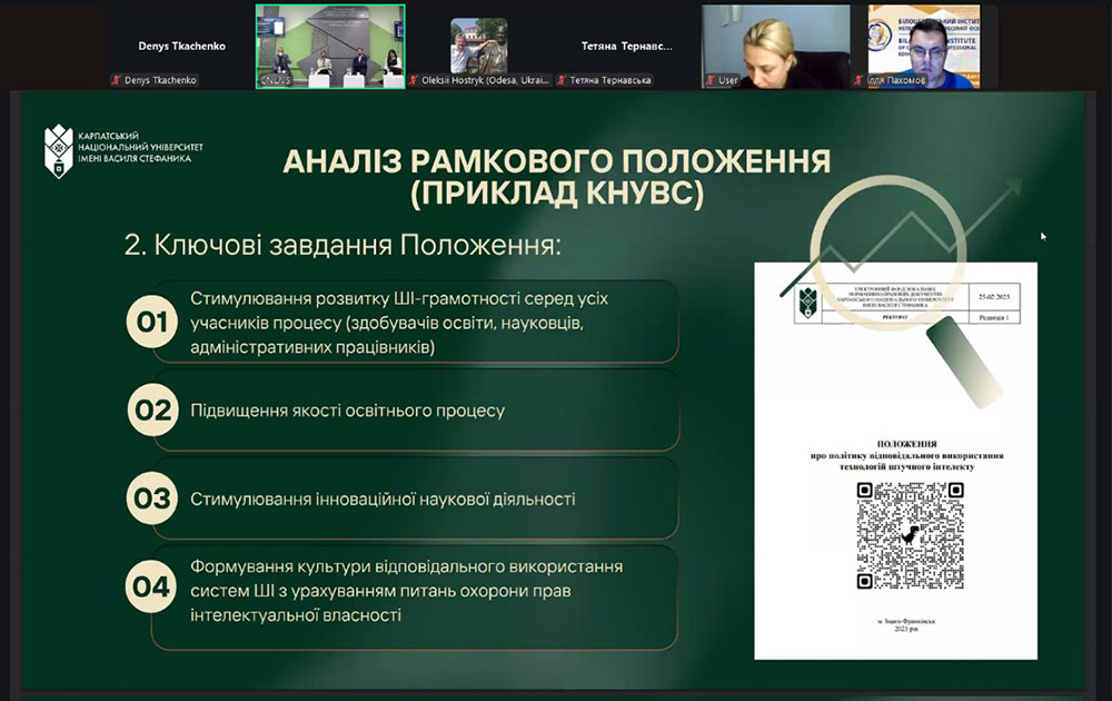 On November 4, 2025, postgraduate students of the Faculty of Design joined the training "Artificial Intelligence and Academic Integrity: How Not to Cross the Line of Permissibility?", organized by the Council of Young Scientists at the Ministry of Education and Science of Ukraine and youth organizations of the Vasyl Stefanyk Carpathian National University.