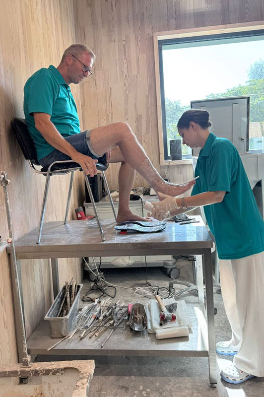 During the training, participants learned about the German vocational training system, which is based on a comprehensive approach to biomechanical foot diagnostics, individual footbed modelling, and the use of modern materials and technological equipment. Particular attention was paid to working with a portable 3D scanner, foot plastering techniques, creating trial footwear from film, and using a heated vacuum press.
