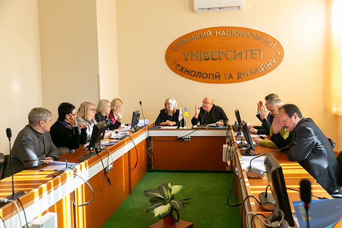 Representatives of leading light industry enterprises participated in the Council’s work: Deputy Chairman of the Cluster Council, Director of LLC “RA.DA” Andrii PROKHOROVSKYI, Director of LLC “SCIENTIFIC AND PRODUCTION COMPANY “HYDROSTIL” Oleh PIVOVAR, Deputy Director of LLC “TK-FURNITURA” Liudmyla BALASHOVA, Director of LLC “DANA-MODA” Liudmyla IVANOVA, Director of TM “EKOTAPOK” Oleksandr HOLOTKO, Director of Individual entrepreneur and Secretary of the Cluster, Head of the Department of Fashion Technology at KNUTD Olha HARANINA. Among the guests were the heads of the University: Acting Rector of KNUTD Oleksandra OLSHANSKA, First Vice Rector Mykhailo KULYNIAK, Vice Rectors Liudmyla HANUSHCHAK-YEFIMENKO, Alla KASYCH, Taliat BIELIALOV, Volodymyr STATSENKO and Anatolii SERPUTKO, and Head of the Research Department Liudmyla HALAVSKA. Also among the guests was Oksana ZAMYSHLIAK, Deputy Head of the Industry and Regular Policy Board, Head of the Industry Division of the Department of Industry and Entrepreneurship Development of the Executive Body of the Kyiv City State Administration.