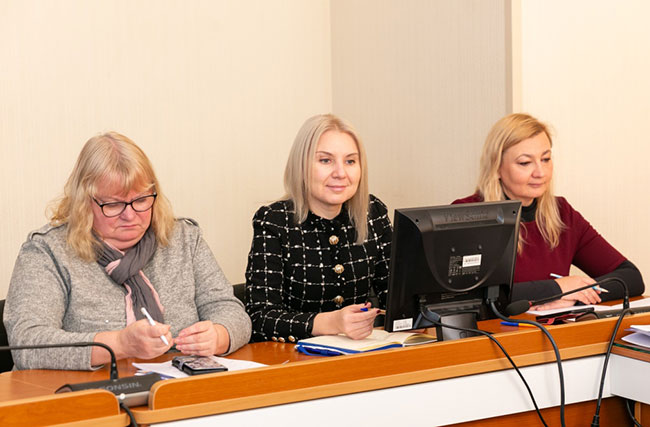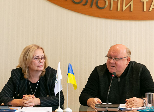 Representatives of leading light industry enterprises participated in the Council’s work: Deputy Chairman of the Cluster Council, Director of LLC “RA.DA” Andrii PROKHOROVSKYI, Director of LLC “SCIENTIFIC AND PRODUCTION COMPANY “HYDROSTIL” Oleh PIVOVAR, Deputy Director of LLC “TK-FURNITURA” Liudmyla BALASHOVA, Director of LLC “DANA-MODA” Liudmyla IVANOVA, Director of TM “EKOTAPOK” Oleksandr HOLOTKO, Director of Individual entrepreneur and Secretary of the Cluster, Head of the Department of Fashion Technology at KNUTD Olha HARANINA. Among the guests were the heads of the University: Acting Rector of KNUTD Oleksandra OLSHANSKA, First Vice Rector Mykhailo KULYNIAK, Vice Rectors Liudmyla HANUSHCHAK-YEFIMENKO, Alla KASYCH, Taliat BIELIALOV, Volodymyr STATSENKO and Anatolii SERPUTKO, and Head of the Research Department Liudmyla HALAVSKA. Also among the guests was Oksana ZAMYSHLIAK, Deputy Head of the Industry and Regular Policy Board, Head of the Industry Division of the Department of Industry and Entrepreneurship Development of the Executive Body of the Kyiv City State Administration.