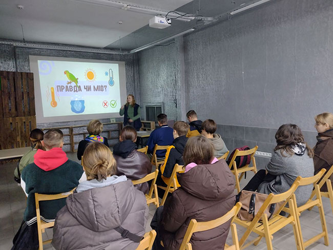 On 15 October 2005, students of the Department of Chemical Technology and Resource Saving of the educational-professional program Chemical Technology and Engineering and Environmental Engineering, together with teachers Viktoriia Plavan and Olena Kryukova, visited the Kyiv City House of Nature as part of the celebration of Ukrainian Climate Week, which took place this year from 6 to 12 October. An interactive lecture on the causes, consequences and primary ways to overcome climate change on the planet was timed to coincide with this event.