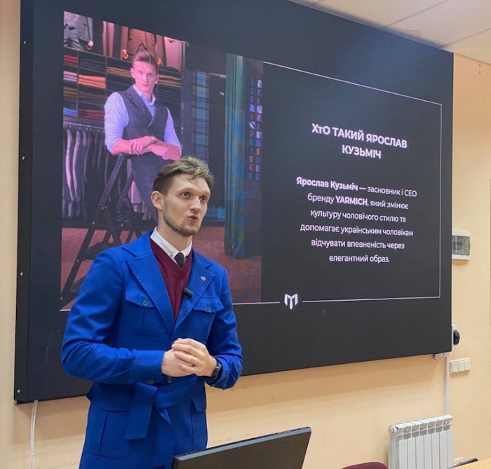 During the lecture, young entrepreneur Yaroslav Kuzmich talked about the path to creating his own brand of classic men's clothing, which is now well-known in Ukraine and abroad.