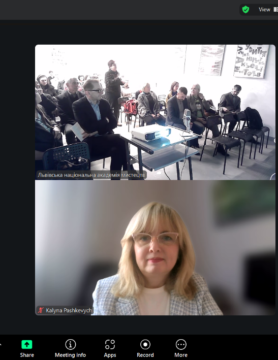 On November 14, 2025, Kalyna Pashkevych, Dean of the Faculty of Design of the Lviv National Academy of Arts, Doctor of Technical Sciences, Professor, at the invitation of Vasyl Kosiv, Rector of the Lviv National Academy of Arts, Doctor of Art History, Professor, took part in the discussion "Development of new standards of higher education: what changes can be expected in art education?" within the framework of the International Conference "ART RESEARCH AND ART AS RESEARCH".