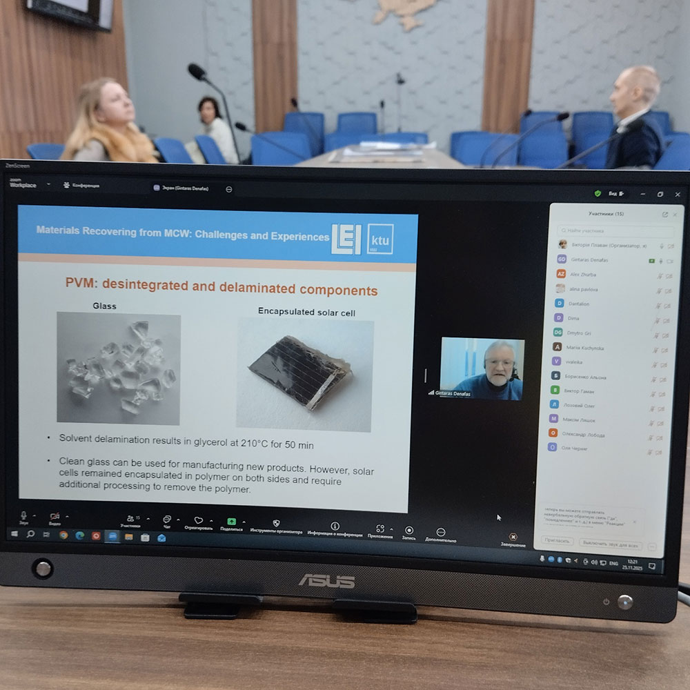 The Head of the Department of Chemical Technologies and Resource Saving, Professor Viktoria Plavan, acted as the moderator of the event. Prof. Plavan acquainted students and teachers with the areas of implementation of the Cooperation Agreement between KNUTD and Kaunas University of Technology, focusing the attention of those present on the fact that the lecture by the guest expert from KTU was taking place for the second time.