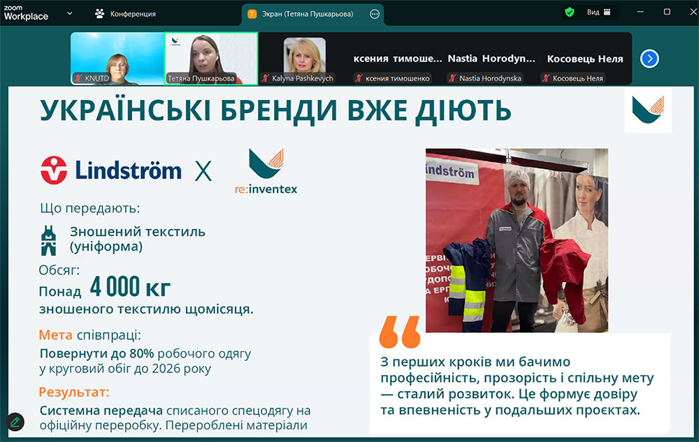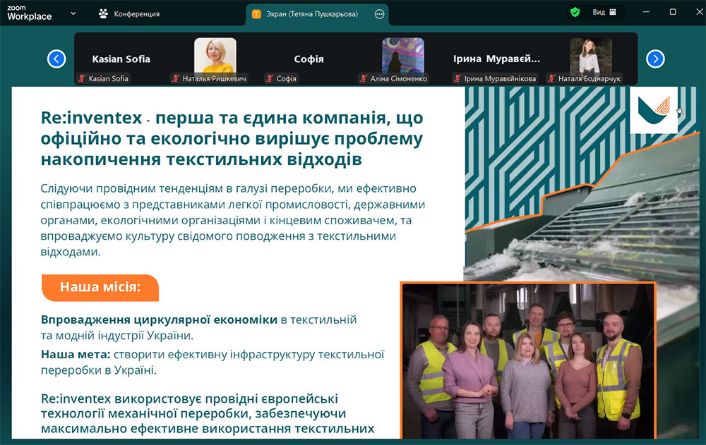 On November 27, 2025, as part of the project "SusWearTex: Baltic Neighbourhood Cooperation in Sustainable Workwear Initiatives - Driving Recycled Fiber Excellence in Workwear Textiles" a meeting was held with Tetiana Pushkarova, Development Manager of the company Re:inventex. Re:inventex is a leader in sustainable development in textile production and waste-free use of textile resources.
