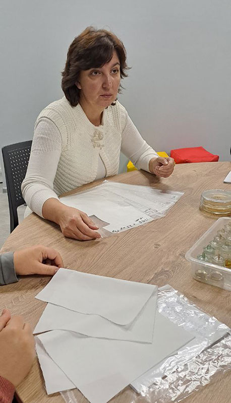 The discussion focused primarily on advanced methods of obtaining and applying nanomaterials. Prof. Olha Haranina emphasized the requirements for special-purpose textile materials. Associate Professor Iryna Liashok presented modern methods for synthesizing nanoparticles with unique antimicrobial properties and highlighted the possibilities of producing fibrous nanomaterials through electrospinning. Associate Professor Iryna Voloshyna reported on methods for evaluating the effectiveness of nanomaterials against various types of bacteria and fungi.