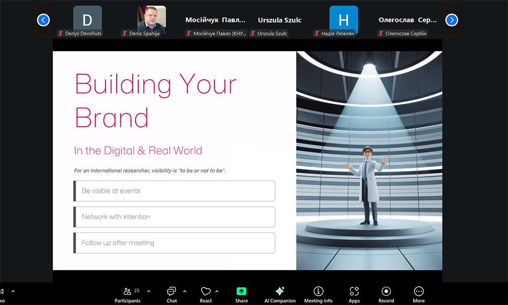 The meeting ended with a networking session for postgraduate students and scientists from the Q-Helix University Alliance. The Dean of the Faculty of Design, Kalyna Pashkevych, and the postgraduate students made a short presentation about their scientific interests. The most active in terms of joint research were the postgraduate students of the program Design (Anastasia Yukhymchuk, Pavlo Mosiychuk, Oleksandr Lisovsky, Olegoslav Serbin, Nadiya Liuklian, Viacheslav Moskal, Sofia Nikolaienko, Natalia Ryshkevych), the program Consumer industry technologies (Denys Devohuts, Maria Kravchuk), the program Vocational Education (Nazar Kotovych), the program Computer Science (Mykyta Usikov).