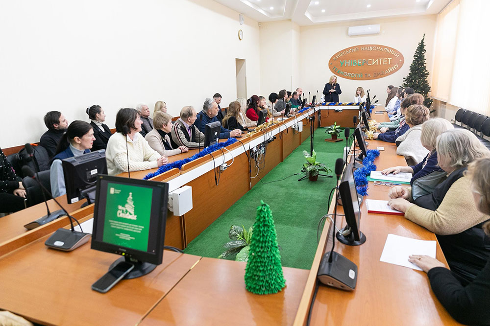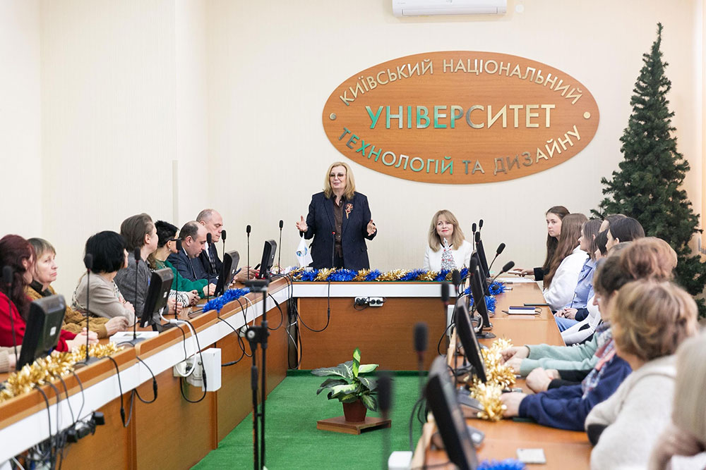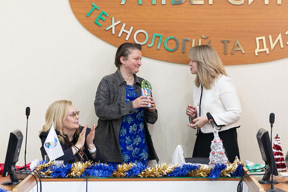 Liudmyla Hanushchak-Yefimenko, Vice-Rector for Research and International Cooperation, Doctor of Science in Economics, Professor, noted the scientific potential of the Faculty of Design, scientific projects implemented by the Faculty's scientists, the high publication activity of teachers and postgraduates, the effectiveness of postgraduate studies in the specialty "Design" and wished the members of the team success, new projects, development and prosperity in the New Year.