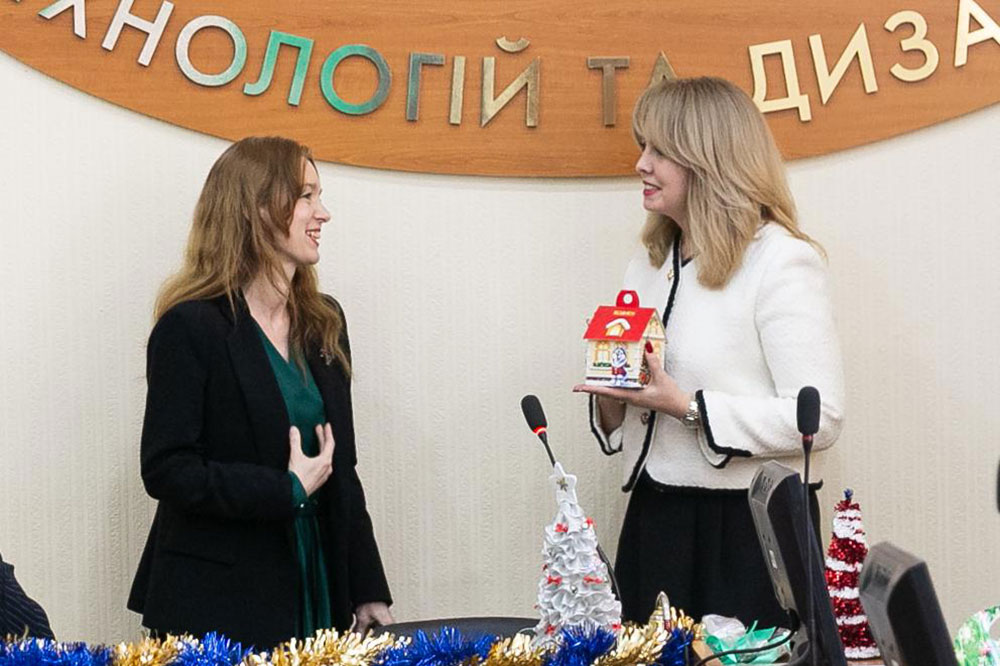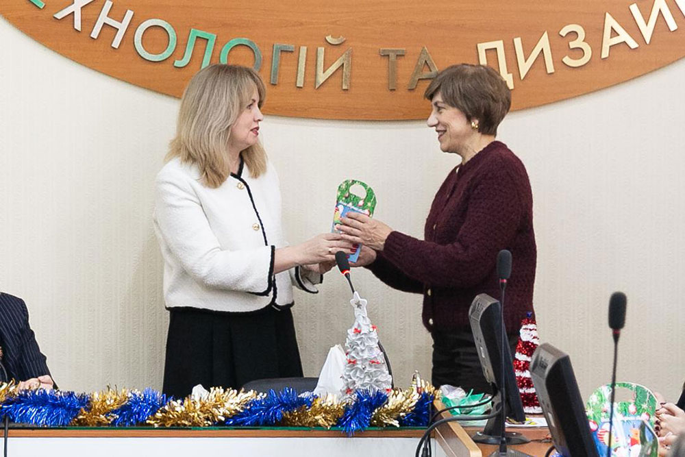 In 2025, the staff of the Faculty of Design fruitfully worked within the framework of international design organizations ELIA, CUMULUS, as well as the projects “Three Seas Initiative Cultural Cooperation Network (3SICCN)”, “TWINNING”, etc., took part in the “Week of Ukrainian Design and Innovation”, won the “Inspireli Awards” competition, expanded international relations with universities in Norway, the USA, Great Britain, Saudi Arabia, Poland, Moldova, Romania, etc. Exhibitions of artists, teachers and students of the Faculty of Design were held in the Exhibition Center of KNUTD “Art Space” and at many exhibition venues in Kyiv, as well as in Poland and Moldova: “Sunflower - a symbol of Ukraine!”, “Colors of Art”, “Antidote” and others. On behalf of the staff of the Faculty of Design, Dean Kalyna Pashkevych thanked the Acting Rector of KNUTD Oleksandra Olshanska, the vice-rectors of the university for their support, care and stable development of the University.