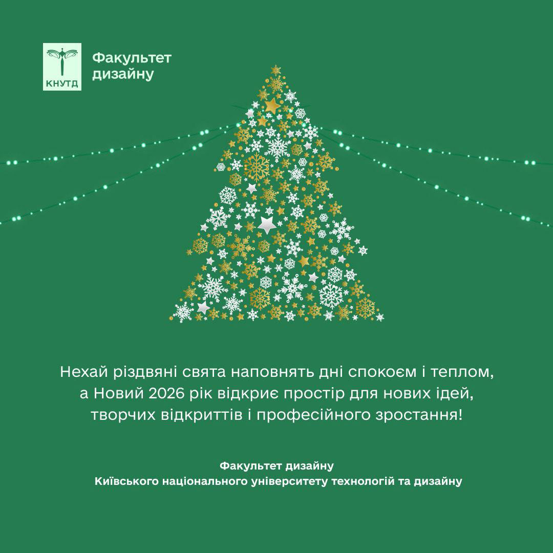 We wish the staff of the Kyiv National University of Technologies and Design that the coming 2026 will be peaceful, joyful and happy for everyone! May the Christmas holidays fill the days with peace and warmth, and the New Year bring many original ideas, creative discoveries and the successful implementation of all your plans!