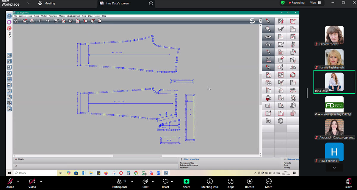During the training, teachers, executors of the InnovaTex project, studied tools for designing and modeling clothing parts, got acquainted with the rules of pattern gradation in the Assyst program and the formation of pattern layouts, with program modules and databases.