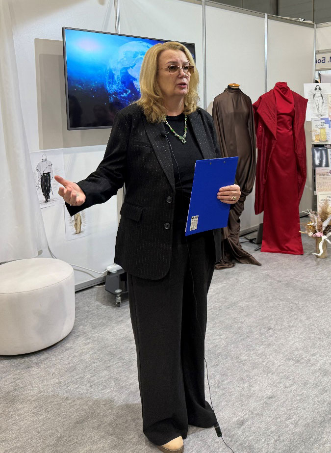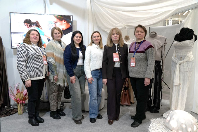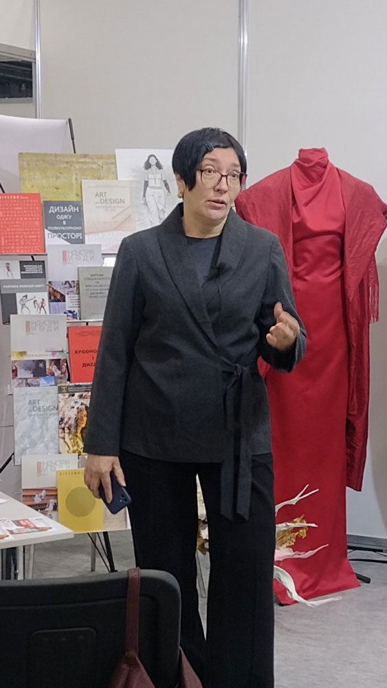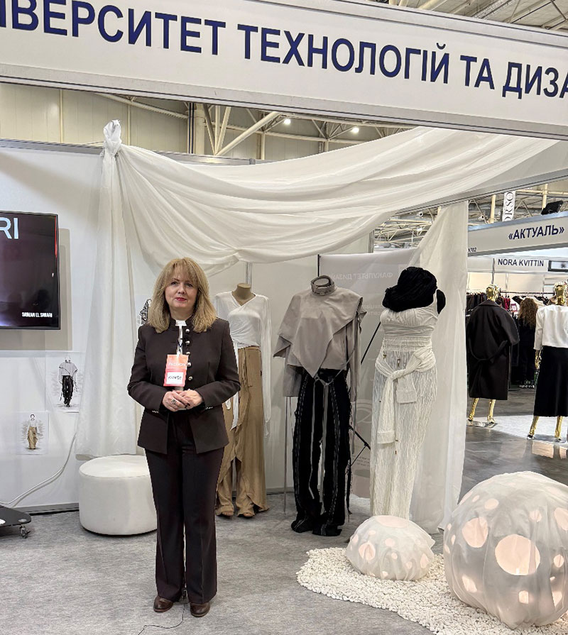 The opening of the KNUTD exhibition stand was traditionally attended by Yana Cherniavska, director of the international fashion festival "Kyiv Fashion", Liudmyla Balashova, deputy director of LLC "TK-Furnitura", representatives of the Kyiv Professional College of Applied Sciences, the Association "Ukrlegprom", graduates of KNUTD. The exhibition participants were greeted by long-time friends and partners of KNUTD – fellow educators of Khmelnytskyi National University. Svitlana Kuleshova, Doctor of Technical Sciences, Professor, Head of the Department of Technology and Design of Garments of KhNU, noted a wide range of areas of cooperation between our universities and expressed hope for its strengthening and expansion in various areas of fashion and design.