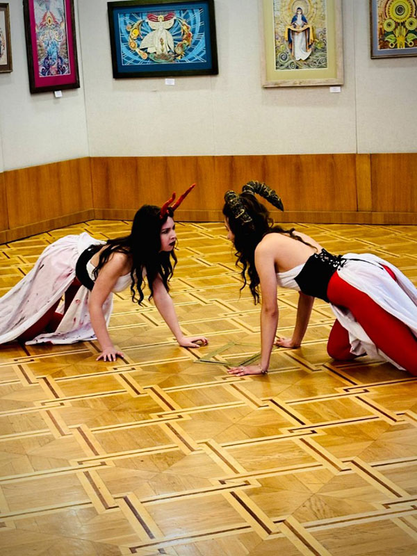 Students Yevheniia Hilenko (BAMP 1-22) and Sofiia Slavinska (BAMP(sk)n 1-23): Under the mentorship of Associate Professor and Honored Artist of Ukraine Liudmyla Ardelyan, they created a special atmosphere by showcasing the continuity of theatrical traditions through the works of Ukrainian classics, specifically I. Kotlyarevsky.
