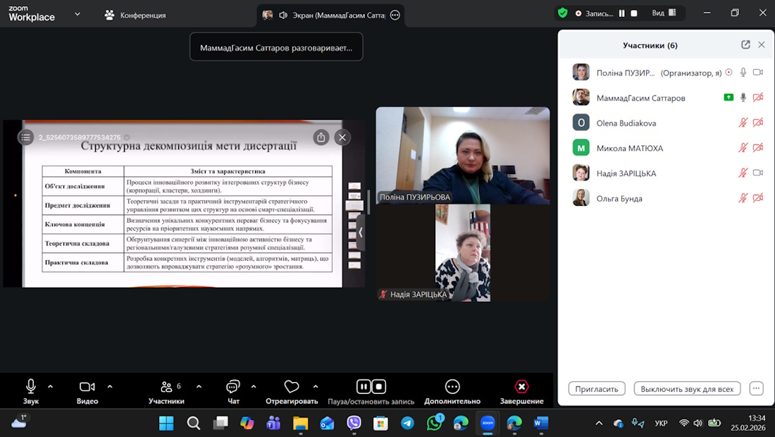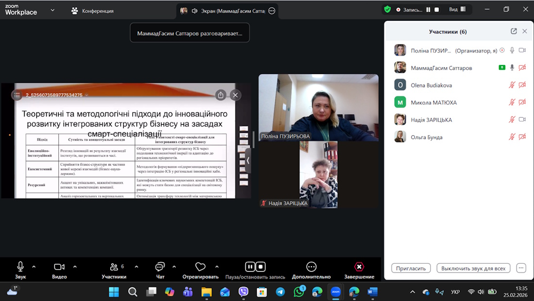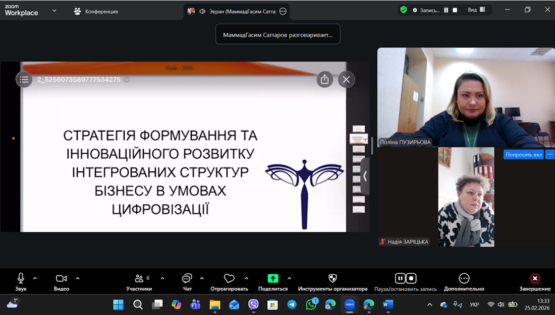 On February 25, 2026, the Department of Economics held another public presentation of the research results of the dissertation of 4th-year PhD student M. Sattarov on the topic «Strategy for the Formation and Innovative Development of Integrated Business Structures in the Context of Digitalization», research supervisor Doctor of Philosophy Melnyk L. in the specialty 051 Economics.