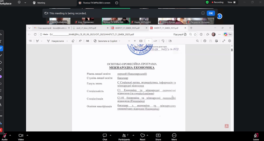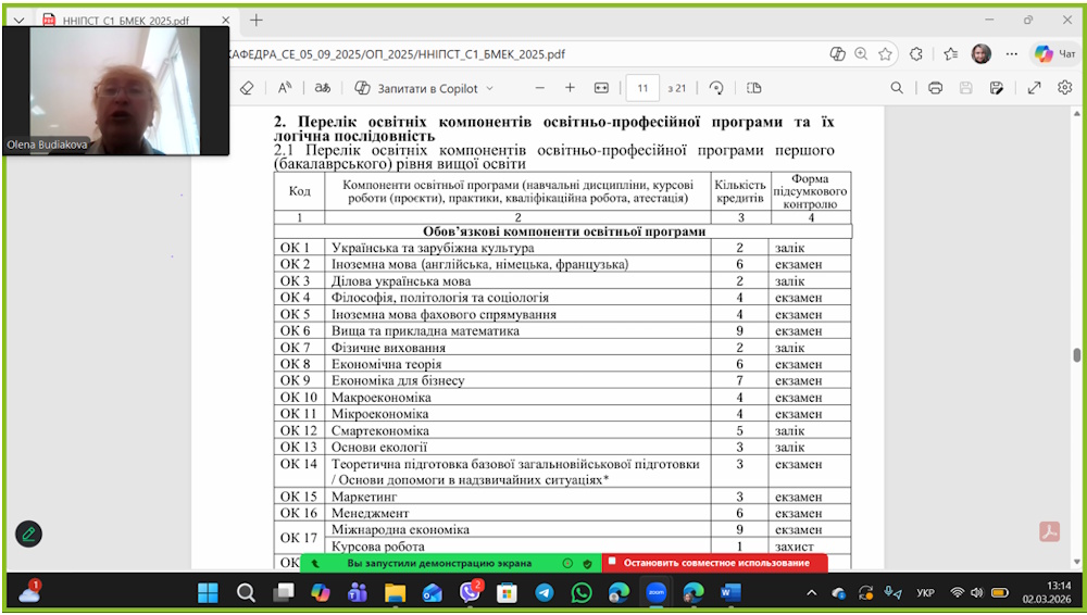During the working meeting, the list of educational components, the logic of their interconnection, the balance between theoretical and practical training, as well as the possibilities for integrating modern digital tools, analytical methods and interdisciplinary approaches were analysed.
