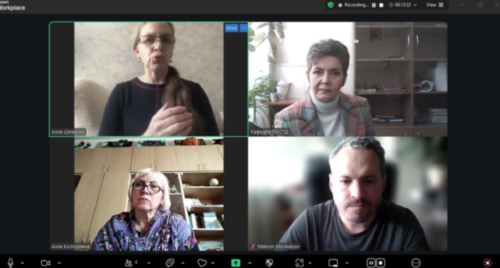 Alla Shevenko, PhD, Senior Researcher of the Department of Labor Psychology of the Ivan Ziaziun Institute of Professional Education of the National Academy of Sciences of Ukraine. The POSTD Department was represented by: Doctor of Pedagogical Sciences, Professor, Head of the Department Alla Semenova; PhD, Associate Professor Maksym Moskaliov, Guarantor of the Educational and Professional Program “Psychology”; PhD, Associate Professor Alla Kolodyazhna. During the working discussion, special attention was paid to the issues of the content of the practical training of students under the educational and professional program “Psychology”.
