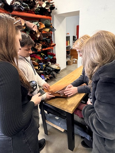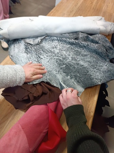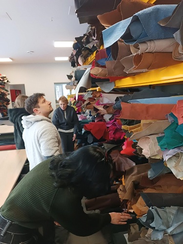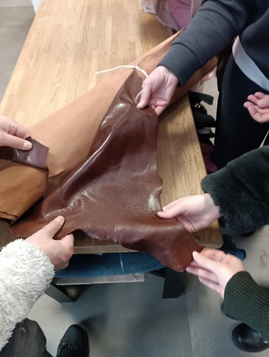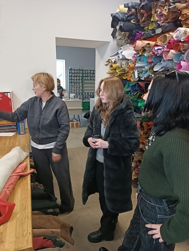 During the visit, students got to know the range of natural leather types in detail – from classic materials widely used in the manufacture of accessories and haberdashery to exotic options with distinctive textures and special performance characteristics. The future specialists had the opportunity to evaluate the processing features, density, plasticity and wear resistance of the materials, as well as learn about the trends in the modern leather goods market.