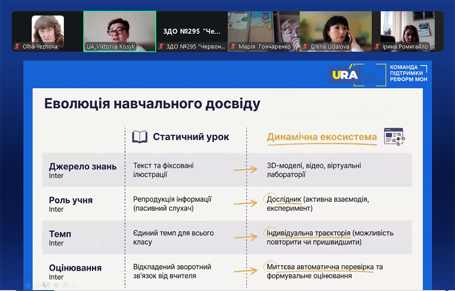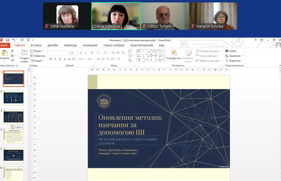 Within the seminar, presentations were delivered by leading scholars of the State Scientific Institution «Institute of education content modernization»: Halyna Kolomoiets, Candidate of Pedagogical Sciences, Deputy Director; Olena Udalova, Candidate of Pedagogical Sciences, Associate Professor, Senior Researcher of the Department for Scientific and Methodological Support of Education Quality Improvement; Tetiana Malechko, Candidate of Pedagogical Sciences, Associate Professor, Head of the Department for Scientific and Methodological Support of Education Quality Improvement; and other researchers and educators.