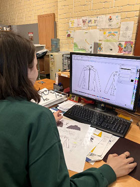 From February 9 to March 7, 2026, the interns carried out the tasks set by the internship program at Flaxpol, one of the largest manufacturers of workwear in Poland. During the first weeks of the internship, students worked in various production positions, including seamstress, quality control inspector, cutter, designer, packer, and pattern marker. The final week was dedicated to an individual project, in which students completed personalized assignments. The interns developed and produced samples of a jumpsuit, trousers, and a jacket. Technical drawings of the garments, pattern construction, layout planning, assembly of technological processes, and creation of machine embroidery schemes were all completed by the students using modern specialized software.
