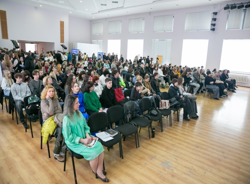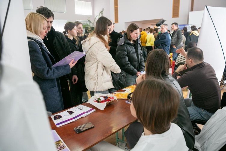 Even before the event began, the venue was filled with a pleasant, welcoming atmosphere: live music played, prospective applicants were immersed in the spirit of student life, eagerly approached faculty information stands, explored the university's educational programs, and interacted with department representatives and current students. Guests among prospective applicants were invited to register via a QR code to participate in a prize draw. The host announced a coffee break from Bakery at the end of the event.