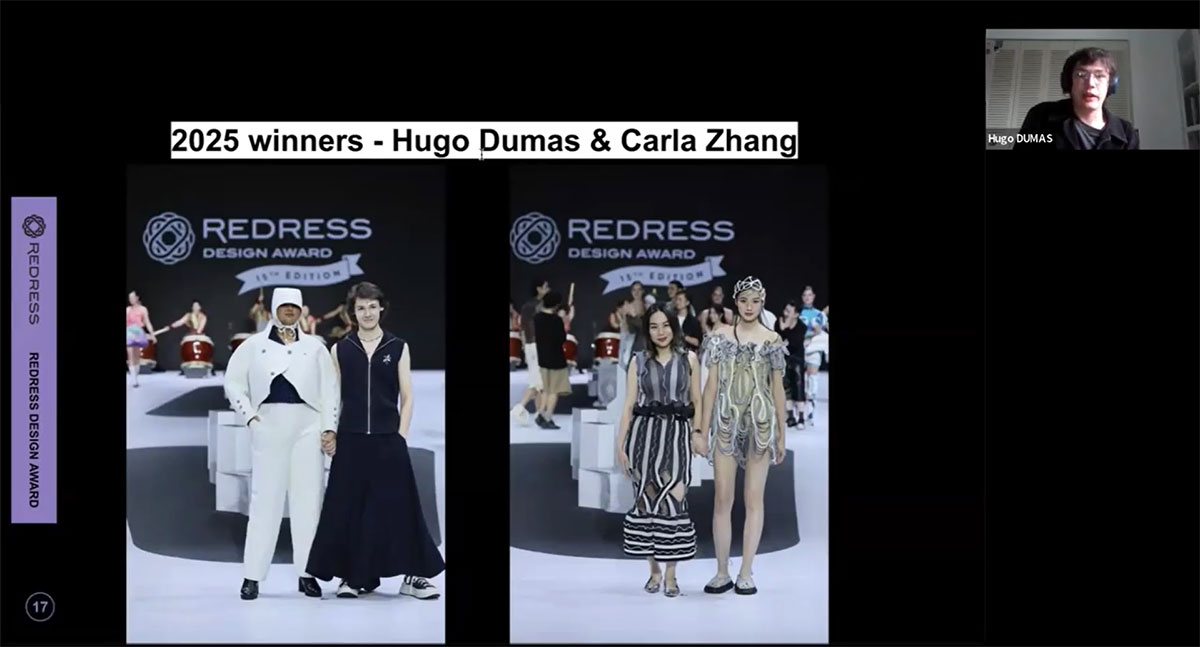 Joining the speaker were 2025 Redress Design Award winners Kara Chan and Hugo Dumas, who shared their own methods for creating collections. The Redress Design Award is the world's leading sustainable fashion design competition, dedicated to educating and empowering young designers around the world.