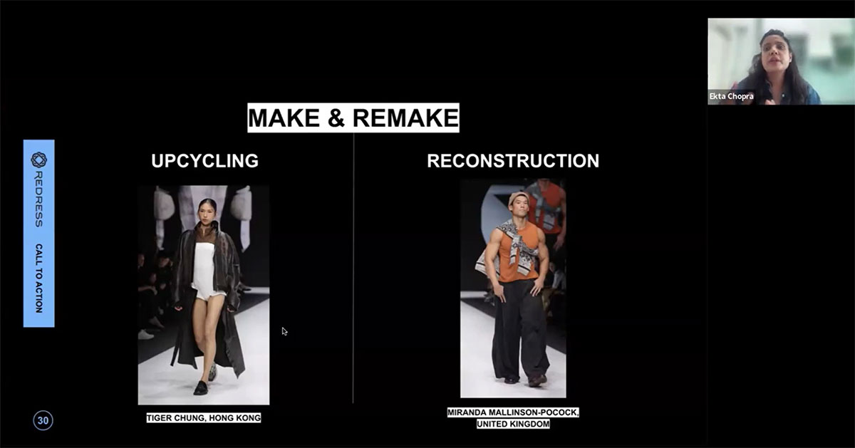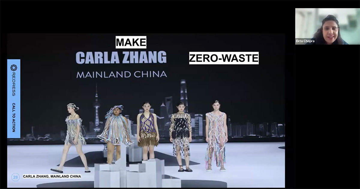 Ekta Chopra spoke about the opportunities for designers to create clothing models using environmentally friendly technologies: from textile waste, from recycled fibers, waste-free cutting, size-free clothing, production of clothing taking into account methods of its further disposal, etc.