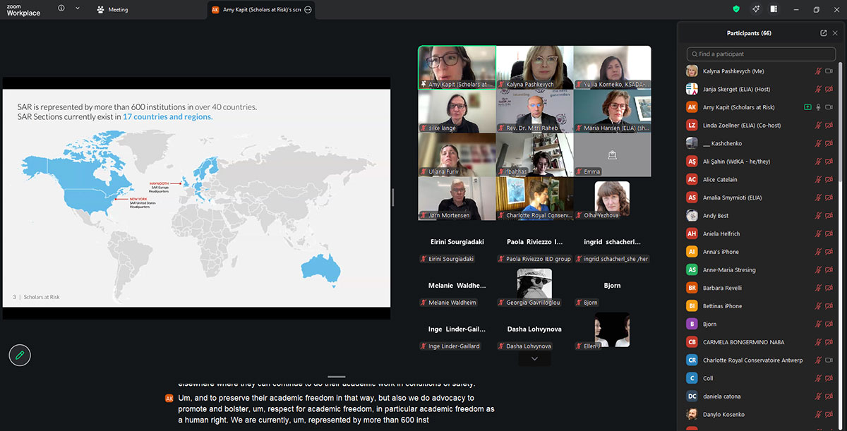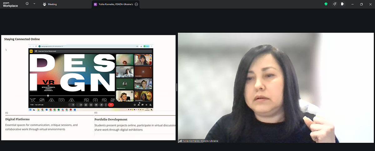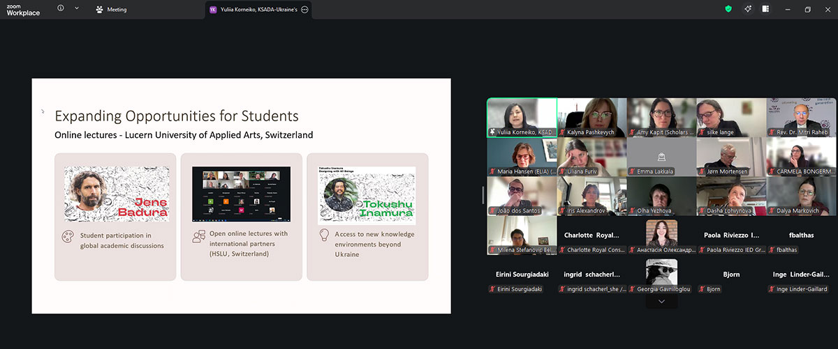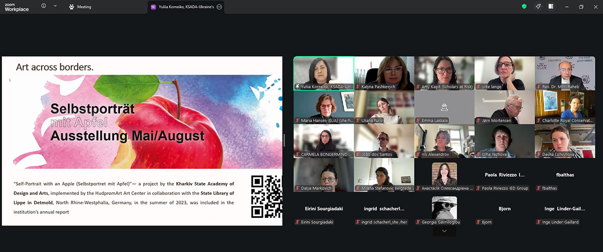Speakers at the meeting, Amy Capit of «Scholars at Risk» (USA), Professor Mitry Raheb of Dar al-Kalima University (Palestine), and Yulia Korneiko of the Kharkiv State Academy of Design and Arts, discussed the challenges facing higher art education in countries experiencing military conflict today.