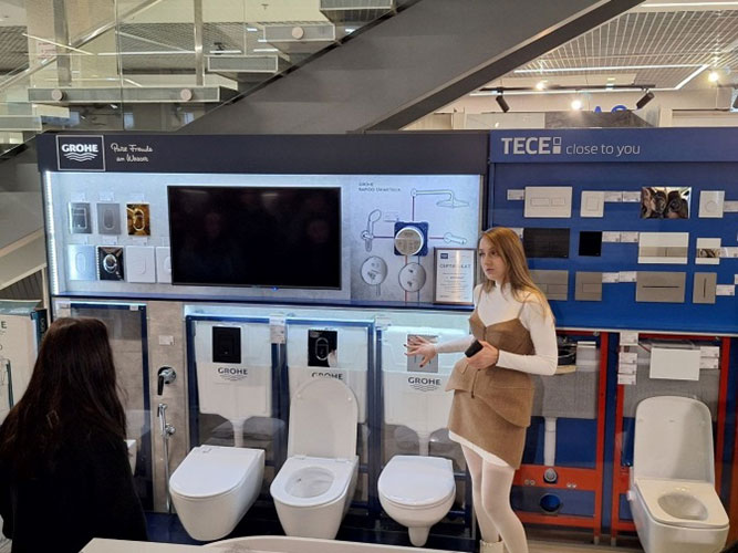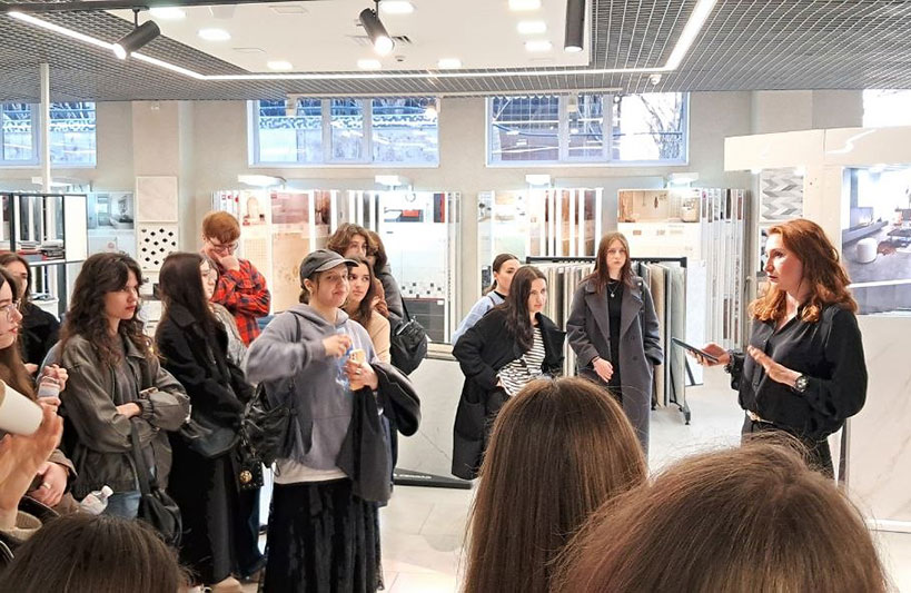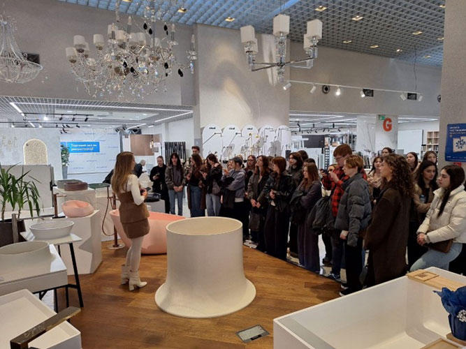 The visit was a valuable opportunity for students to deepen their practical knowledge of finishing materials and plumbing, which are widely used in modern interior design. Participants were introduced to the product range, current solutions for residential and commercial spaces, as well as the principles of selecting materials and equipment for different types of interiors.