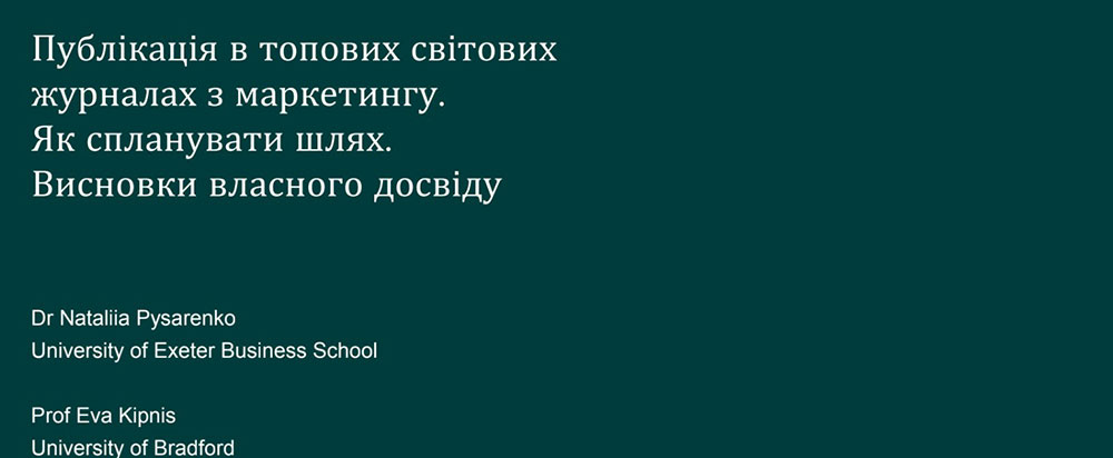 Invited experts from the UK shared their experience: Dr. Natalia Pysarenko, Director of the master’s Program "Marketing and Business Analytics" at the University of Exeter, and Dr. Eva Kipnis, Professor at the University of Bradford. During the webinar, the key topic was "Publication in top global marketing journals. How to plan the path. Conclusions from own experience".