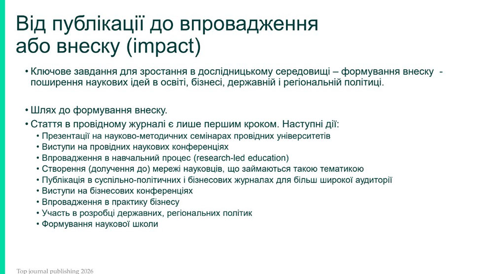 Separately, the speakers emphasized that publications in top journals are not only a scientific result, but also a strategic tool for influence in the international academic environment. The importance of the concept of share of voice - the opportunity to be heard in the global scientific community, as well as strengthening the role of Ukraine in world science was emphasized.