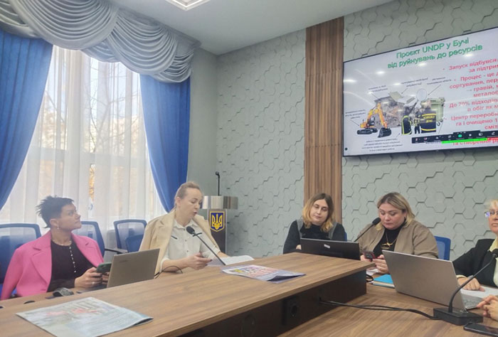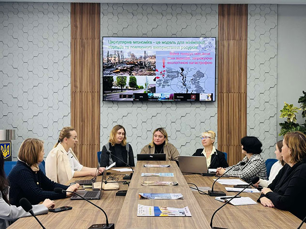 Lyudmila MELNYK, Doctor of Philosophy in Economics, Associate Professor of the Department of Economics, presented a report on «Circular Economy for Waste Management in Wartime» using the example of the Bucha district.